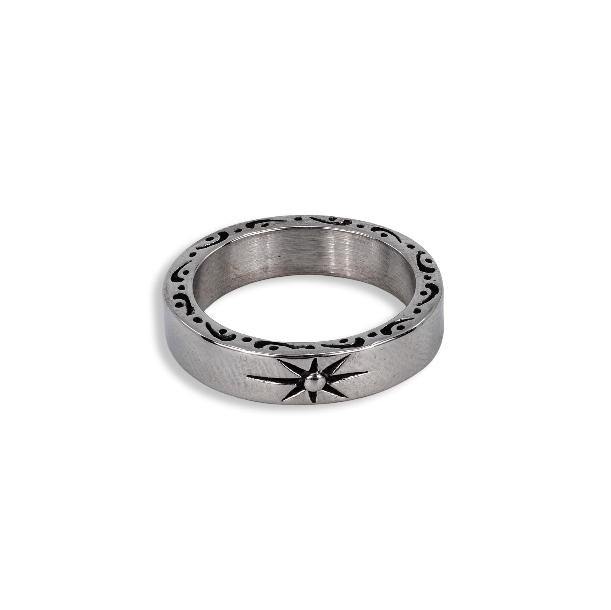 Gefertigt aus Edelstahl, setzt dieser Herrenring auf eine klare, massive Form mit einem markanten Symbol als Fokus. Das eingearbeitete Stern-Detail bricht die glatte Oberfläche gezielt und gibt dem Ring Charakter, ohne verspielt zu wirken. Der Ring funktioniert pur getragen genauso wie im Zusammenspiel mit anderen Schmuckstücken. Passt zu cleanen Outfits, dunkleren Looks oder als Kontrast zu minimalistischen Styles. Ein Piece für alle, die es ruhig mögen – aber nicht beliebig.