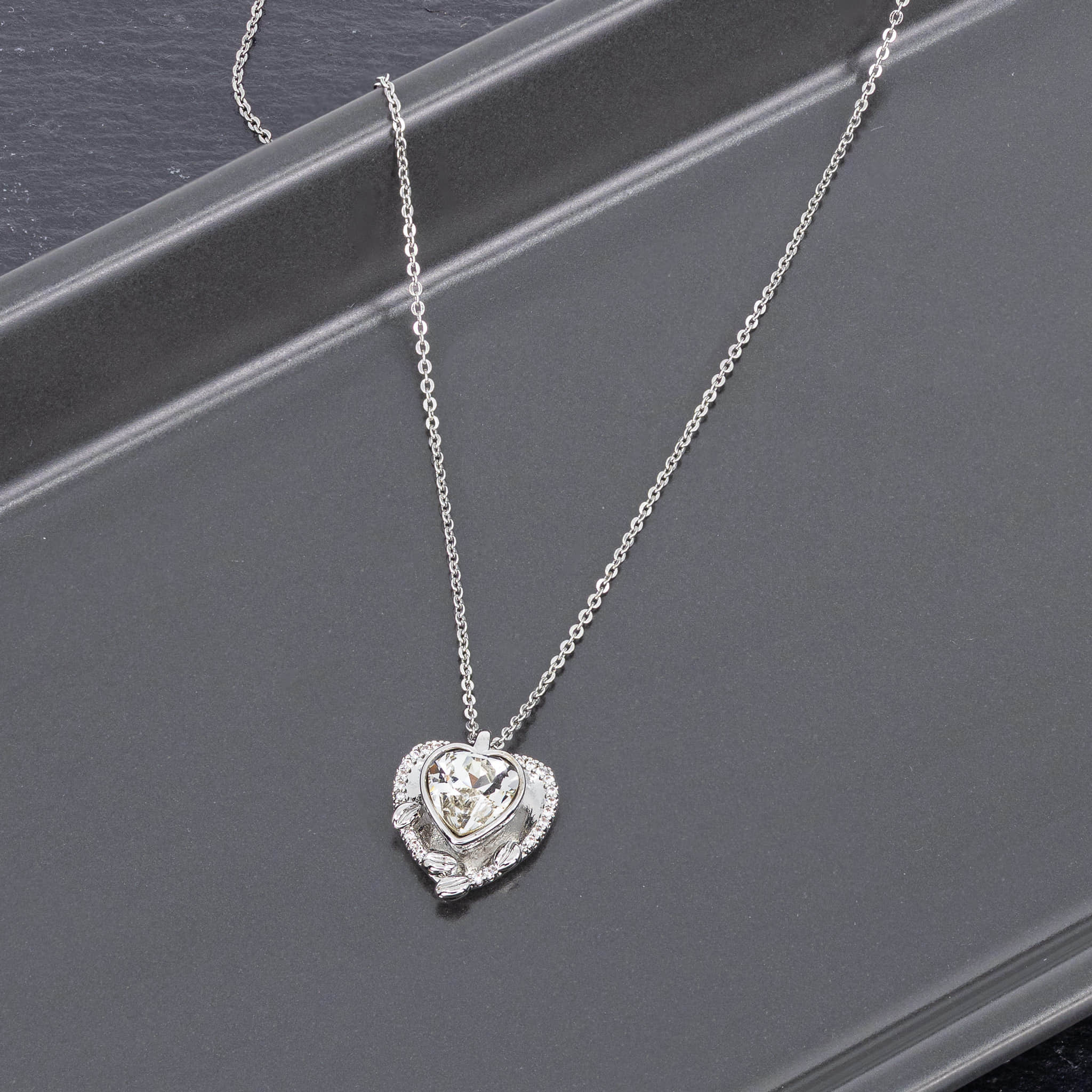 Dieses Piece setzt auf reinen Glow: Ein facettierter Herzstein im Zentrum, umgeben von klaren Zirkonia, die den Anhänger zu einem echten Highlight machen. Die silberfarbene Kette hält den Look clean und modern, damit der Anhänger genau das tun kann, wofür er gemacht ist: glänzen, auffallen, Aufmerksamkeit ziehen. Ein Design zwischen Romance und High-Fashion – perfekt für Looks, die Eleganz und modernen Glam kombinieren. Ob solo oder im Layering: Diese Kette bringt sofort dieses effortless classy Feeling, das jedes Outfit aufwertet.