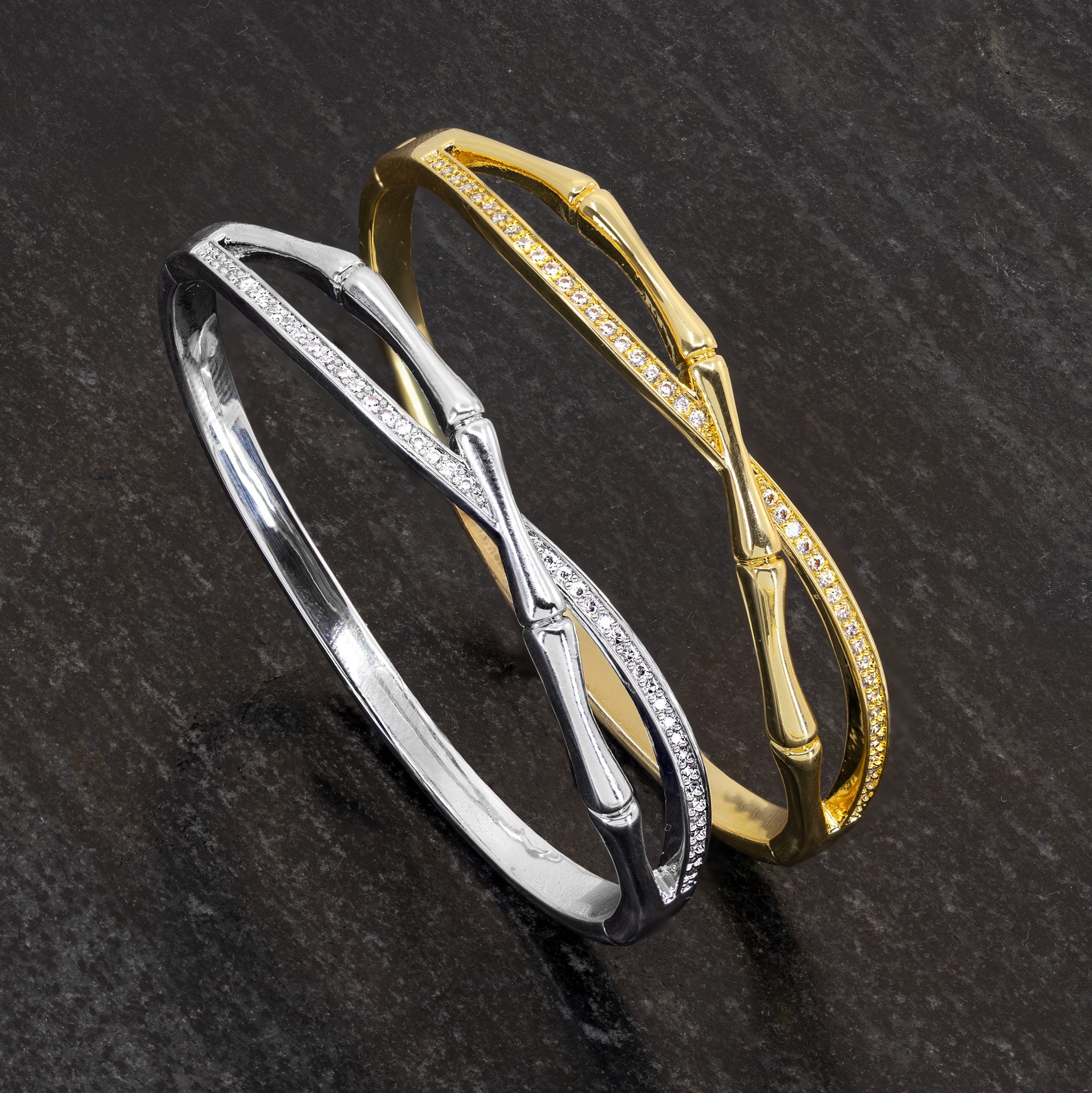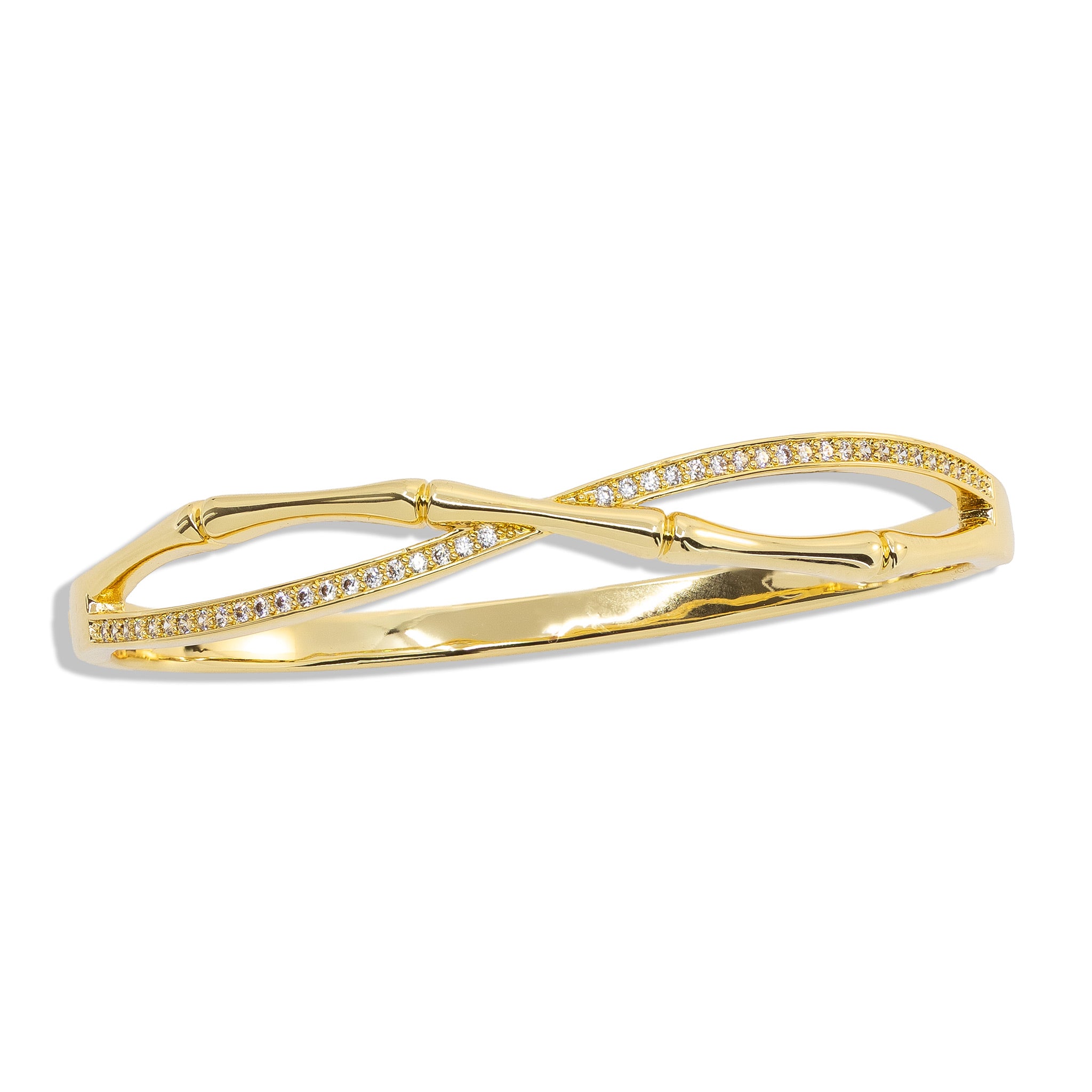 Infinity-Armreif aus Edelstahl, wahlweise in Silber oder mit 18k Vergoldung. Elegantes Design mit funkelnden Zirkonia – modern und zeitlos.