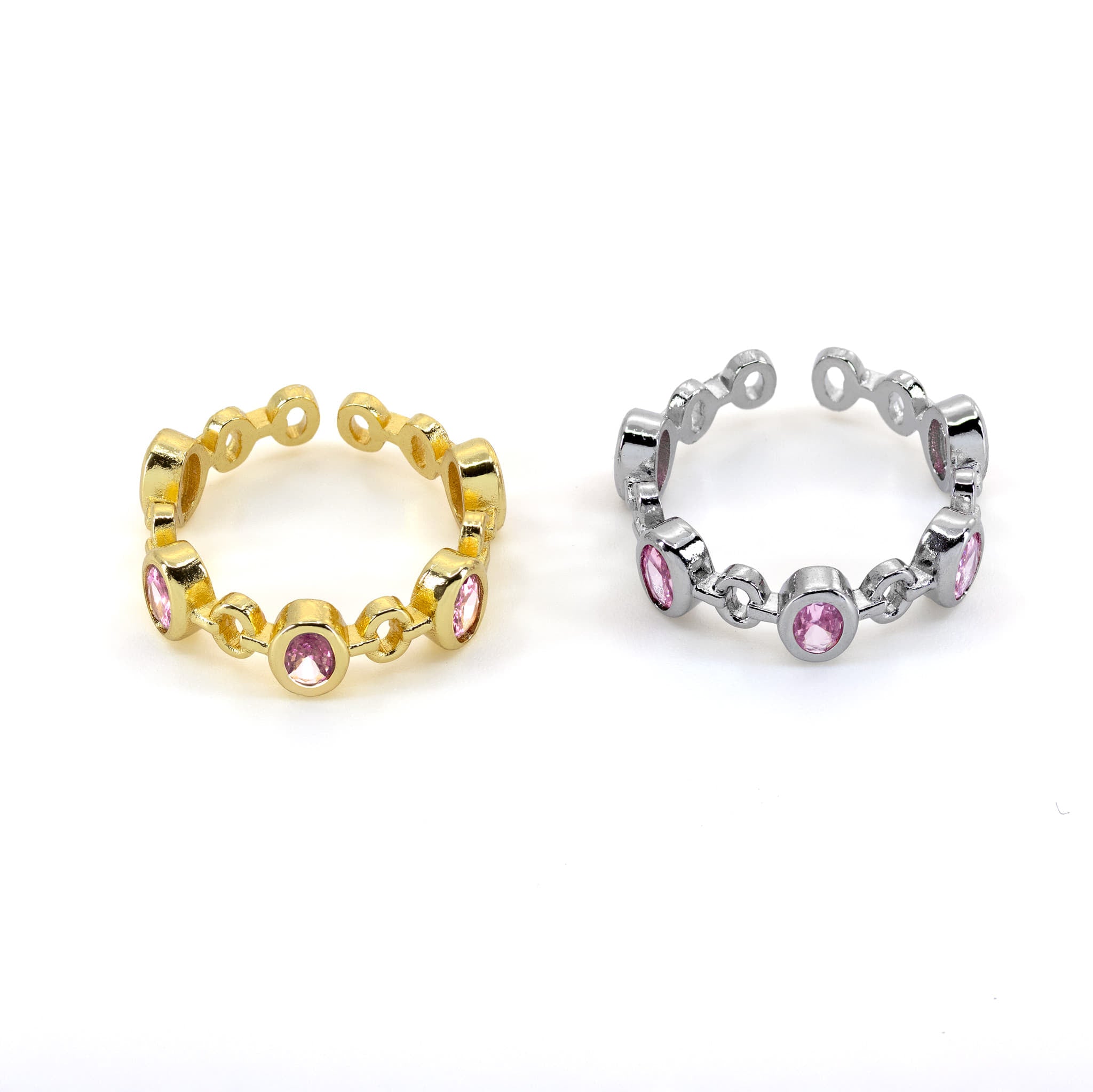 Offener Ring mit runden rosa Schmucksteinen